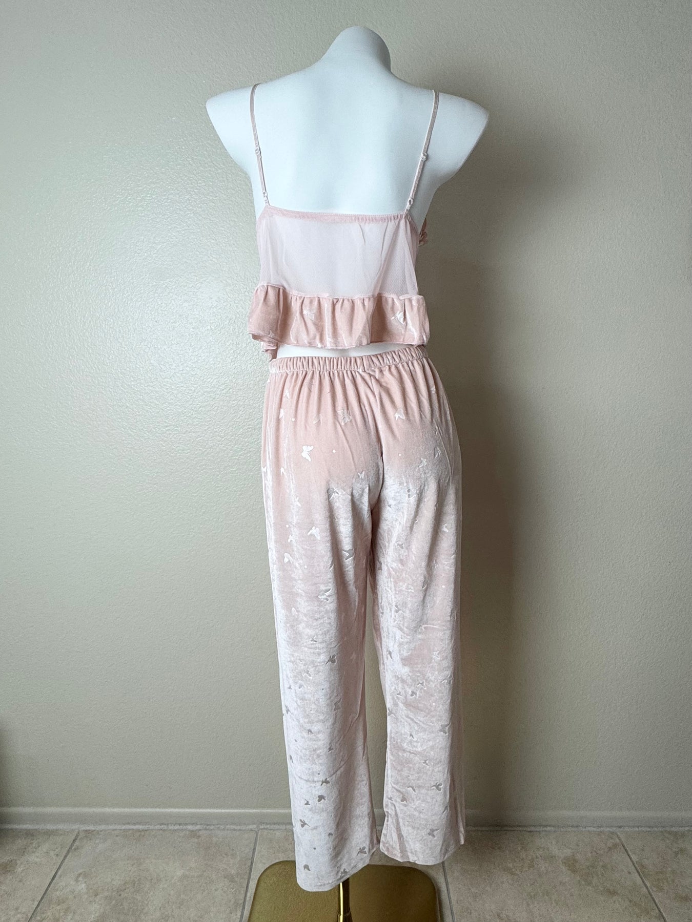 Long Velvet Butterfly Pattern Cami Set + Robe Top