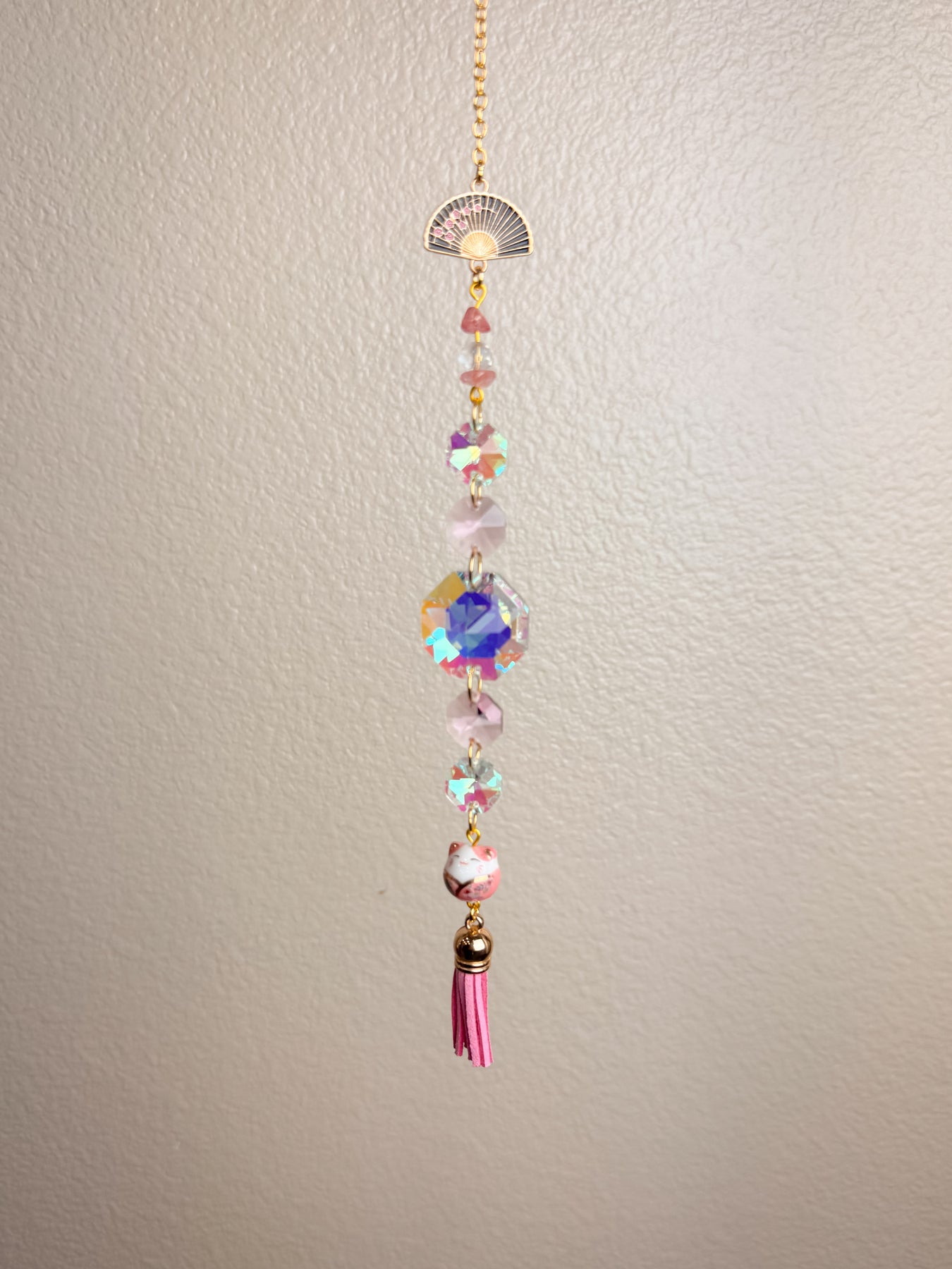 Introducing the Lucky Cat Suncatcher - a unique and charming addition to your home decor. Place it in any window to enjoy its delicate, colorful reflections and bring a touch of warmth to your space.