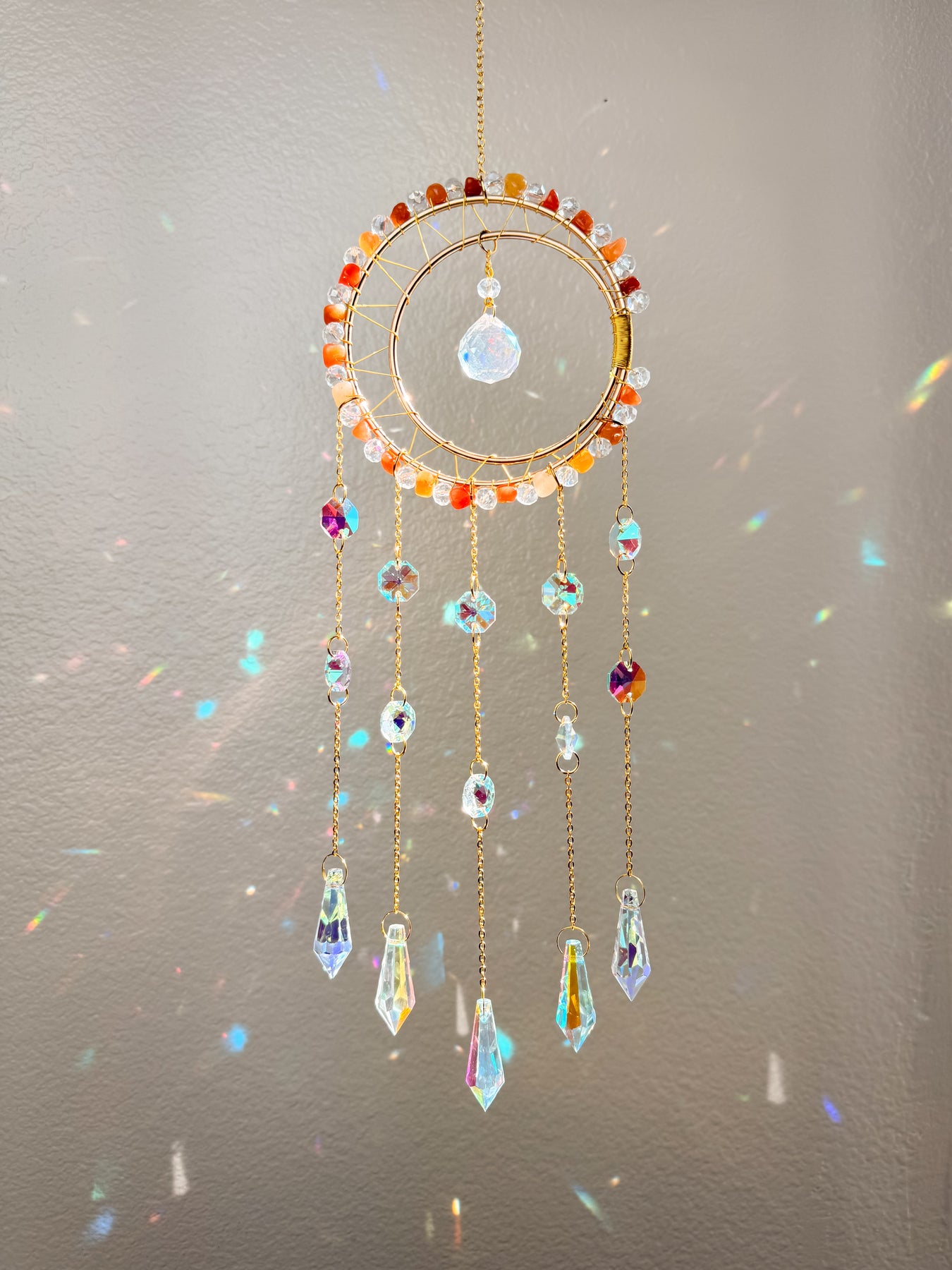 Wishfall is a delicate, handcrafted suncatcher inspired by falling stars and whispered dreams. This piece captures sunlight and transforms it into shimmering rainbows. It suggests that every glimmer and sparkle from the suncatcher carries a wish waiting to come true. It’s romantic, a little magical, and full of hope.